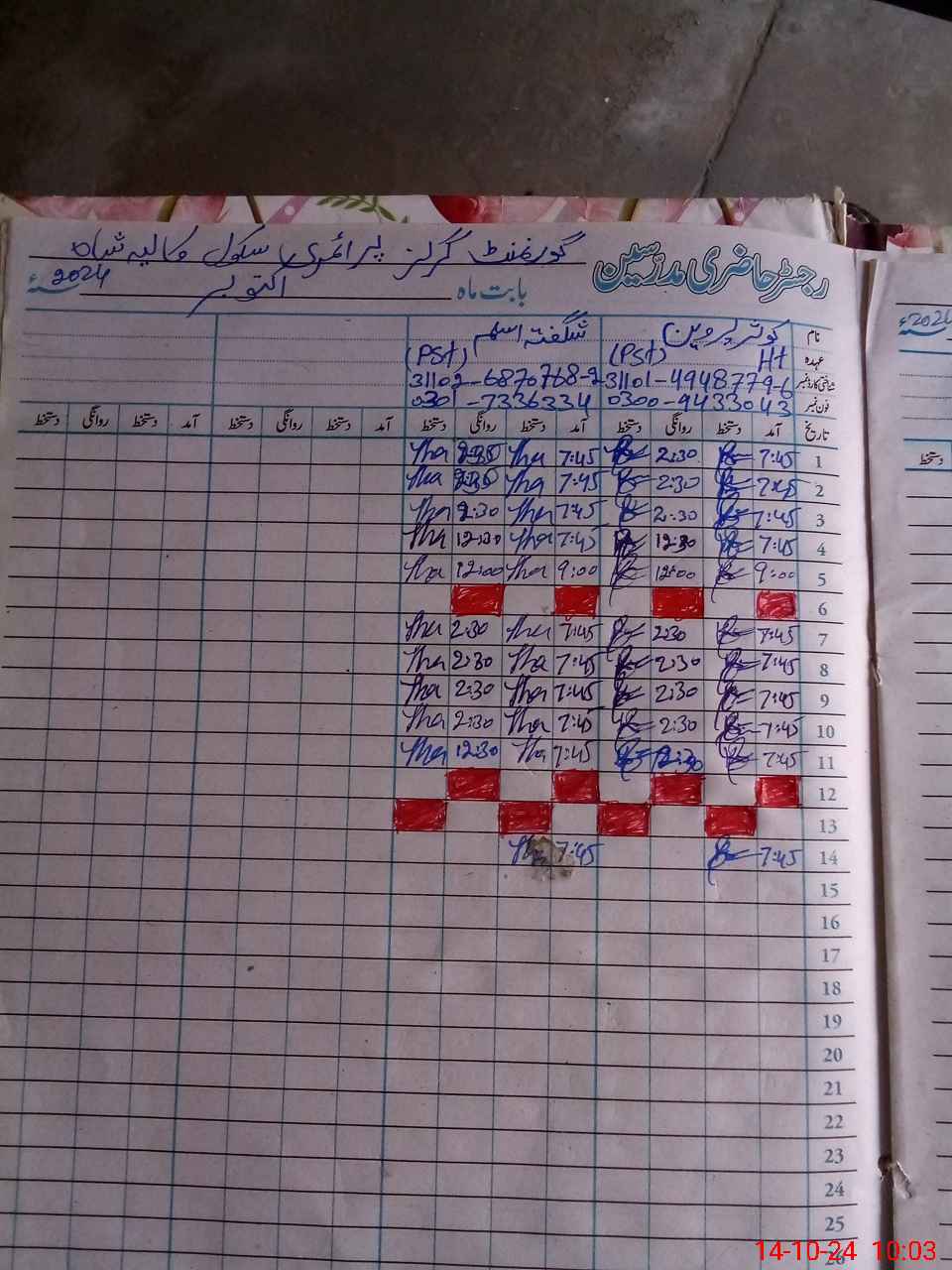 | Name: Ka**** Pa**** Designation: (School Headmaster's/Headmistress's) PST Phone/Cell Number: 03**** |
