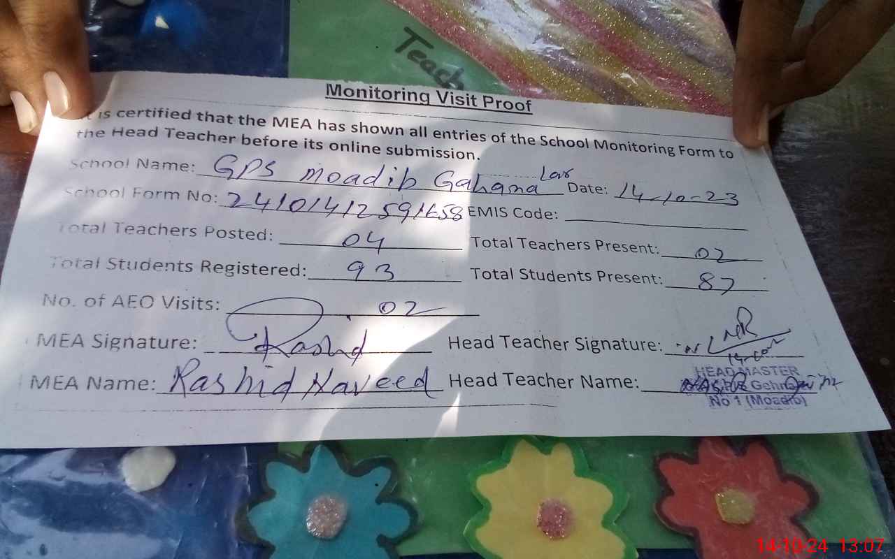 | EMIS Code: 31310636 | Name of School: GPS MOADIB GAHANA LAR | |||