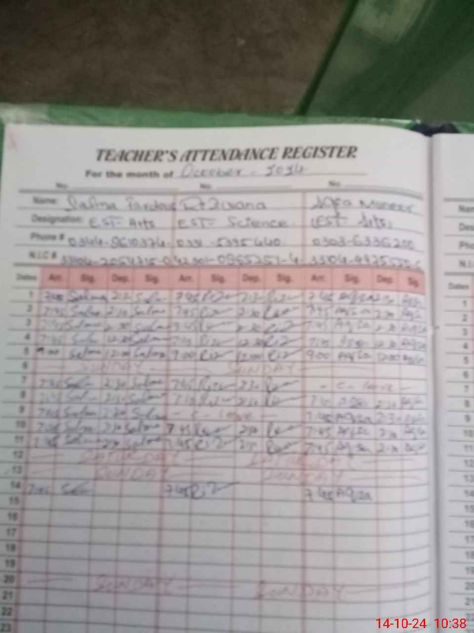 | 33**** | Wa**** | NAIB QASID | 0 | 0 | 0 | 0 | 0 | 0 | 0 | 0 | 0 | Absent (Un-Authorized) | |