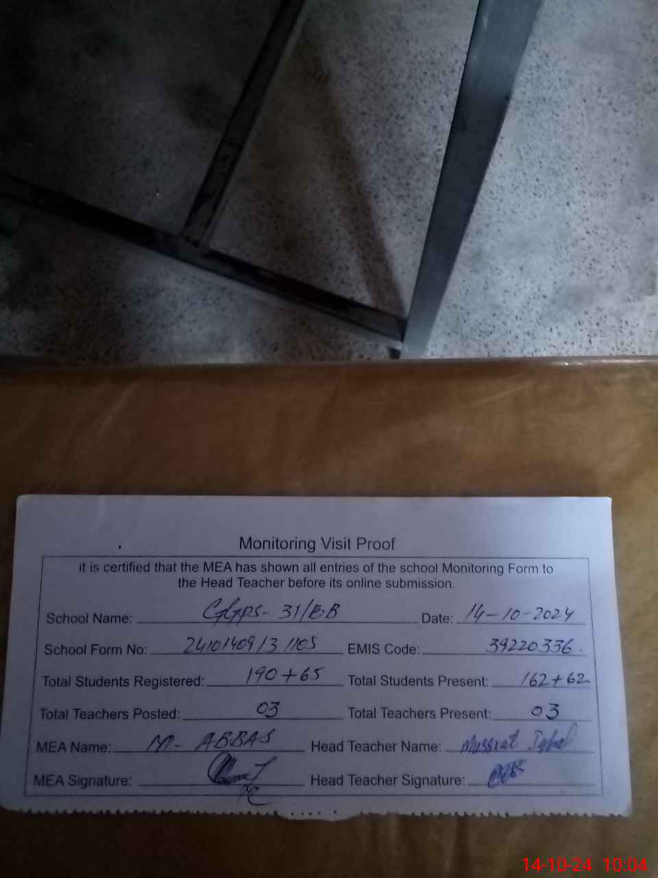 | Certified that this School was Inspected by the Undersigned MEA/DMO Today and the Information Stated Above is as Per Record. | |||||