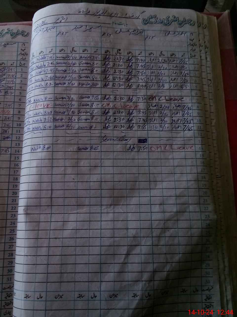 | Leave | Duty | Absent | Maternity | Medical | Ex- Pak |
