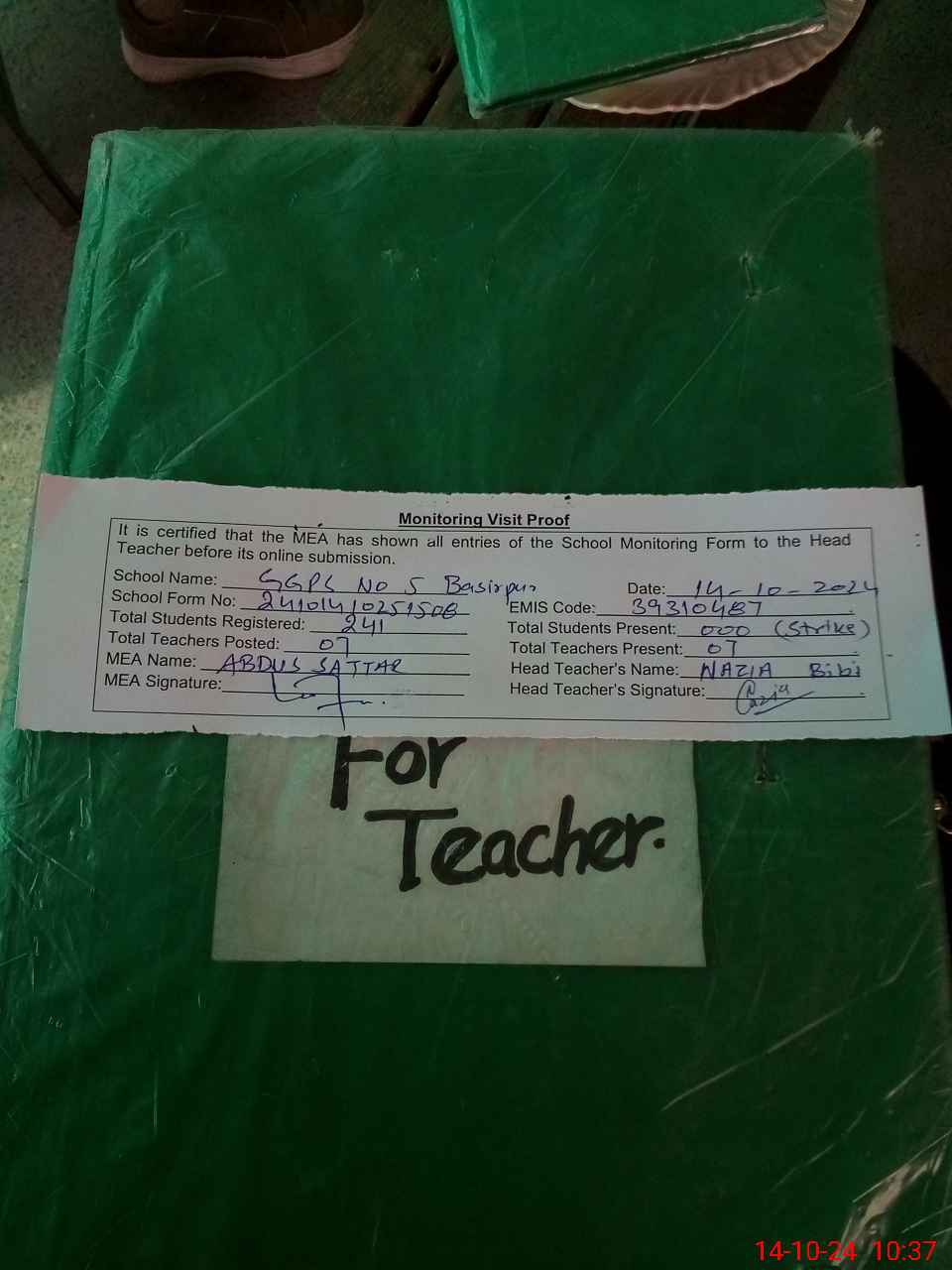 | Attendance Register | Head Teacher | MEA with School | Visit Proof |