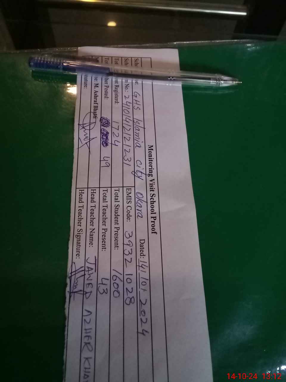 | EMIS Code: 39321028 | Name of School: GHS ISLAMIA OKARA CITY | |||