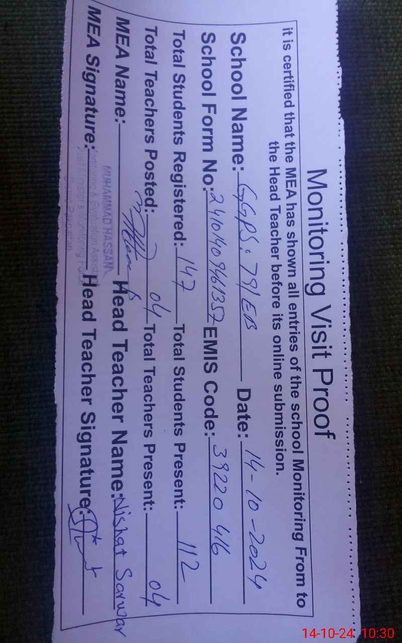 | EMIS Code: 39220416 | Name of School: GGPS 79/EB-I ARIFWALA | |||