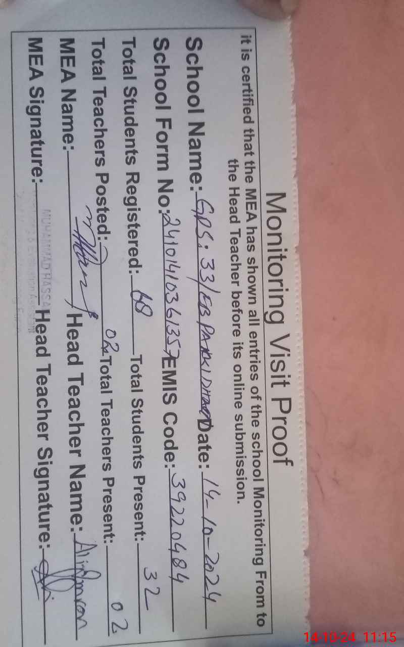 | EMIS Code: 39220484 | Name of School: GPS PAKKI DHARY DAKHLI CHAK NO. 33 EB | |||