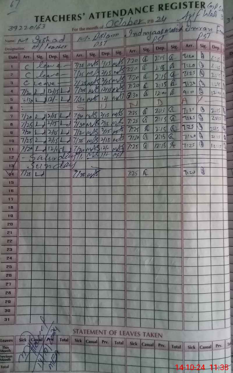 | Name: MU**** IR**** Designation: (School Headmaster's/Headmistress's) PST Phone/Cell Number: 03**** |