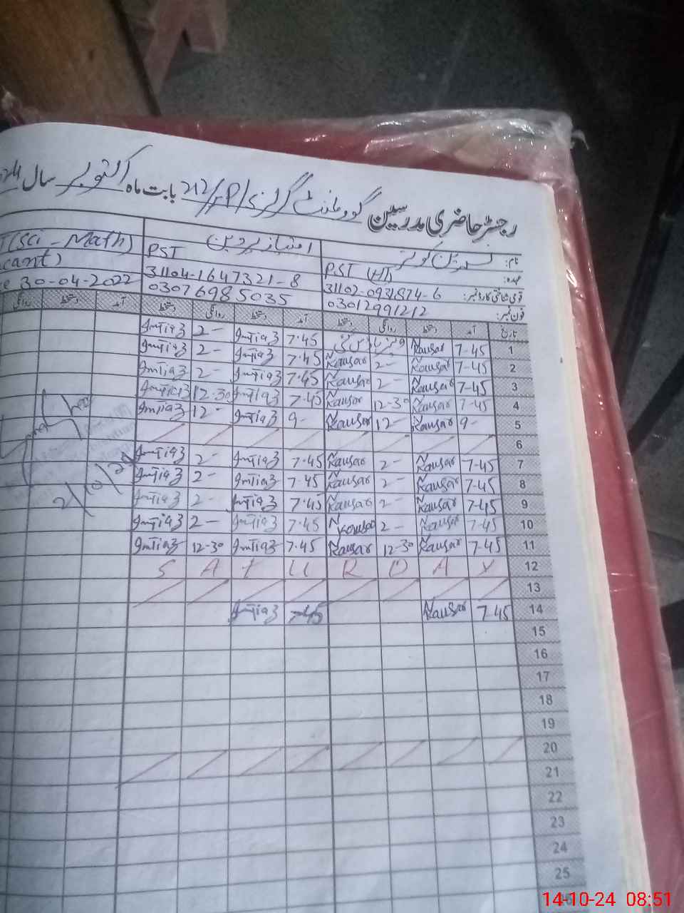 | Name: NA**** KO**** Designation: (School Headmaster's/Headmistress's) PST Phone/Cell Number: 03**** |