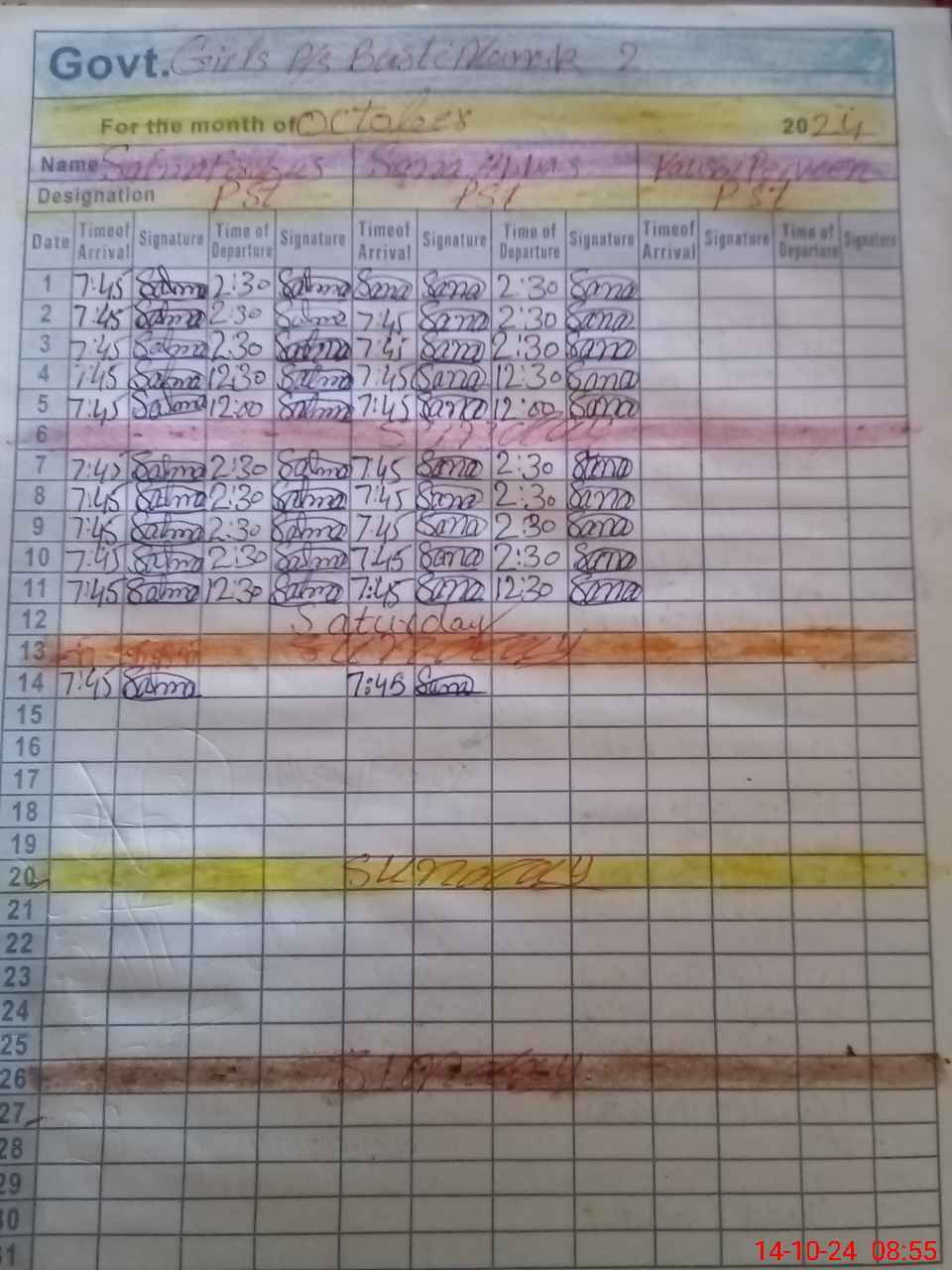 | 36**** | Ka**** | CHAUKIDAR | 0 | 0 | 2 | 0 | 0 | 0 | 0 | 0 | 0 | Absent (Un-Authorized) | |