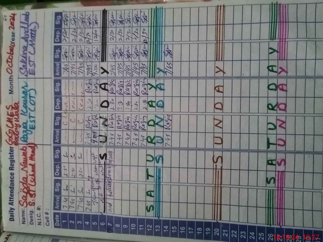 | Name: SA**** NA**** Designation: (School Headmaster's/Headmistress's) Incharge Head SST G Phone/Cell Number: 03**** |