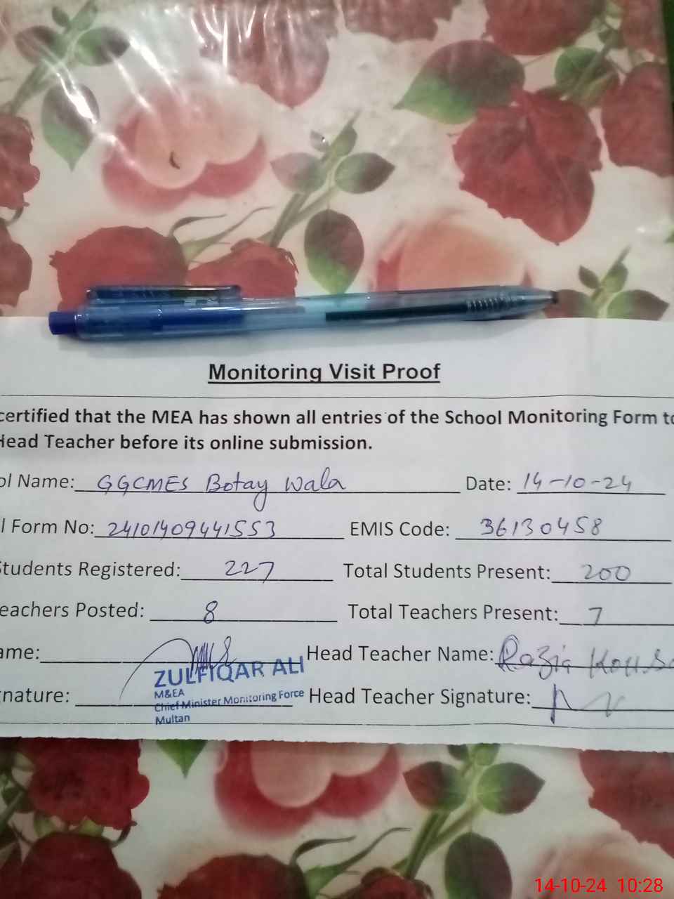 | EMIS Code: 36130458 | Name of School: GGHS BOTAY WALA MAKHDOOM RASHEED | |||