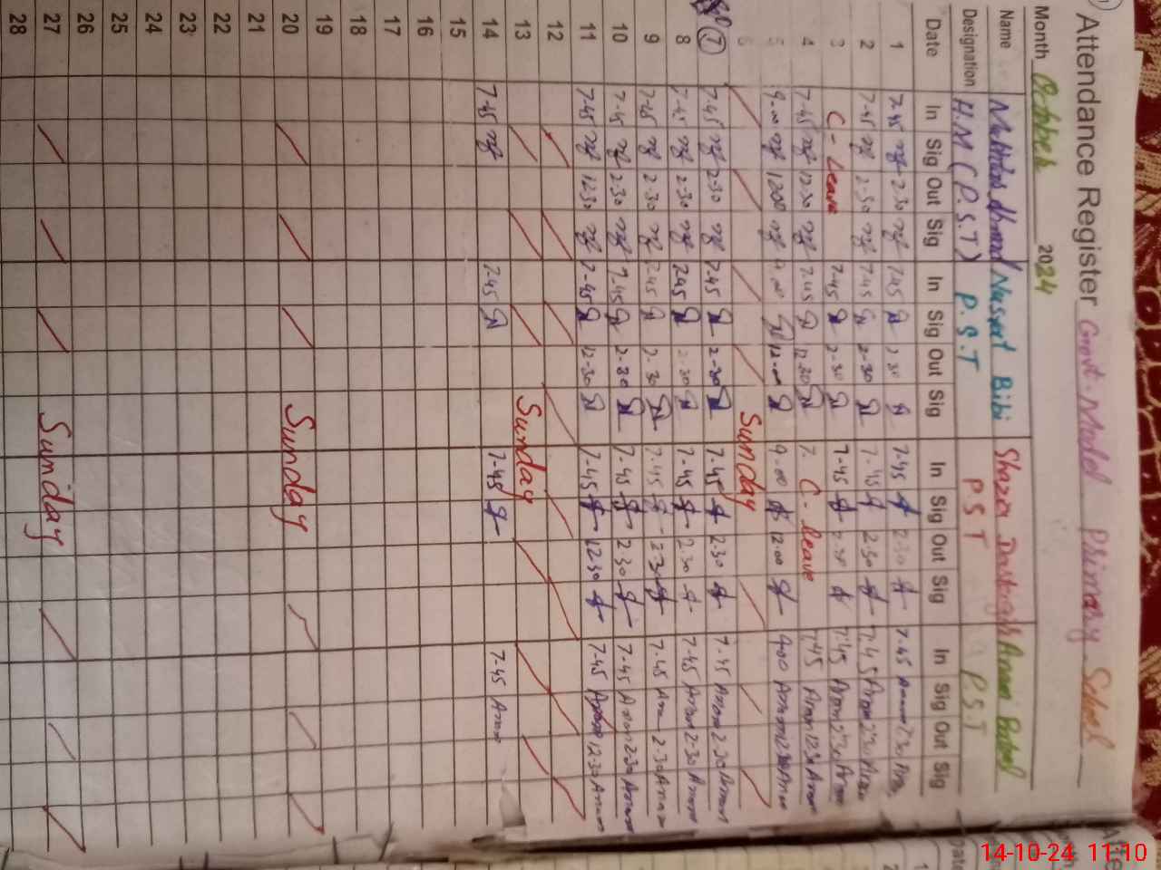 | CNIC | Full Name | Designation | R/C | Absence During Last Calender Month |