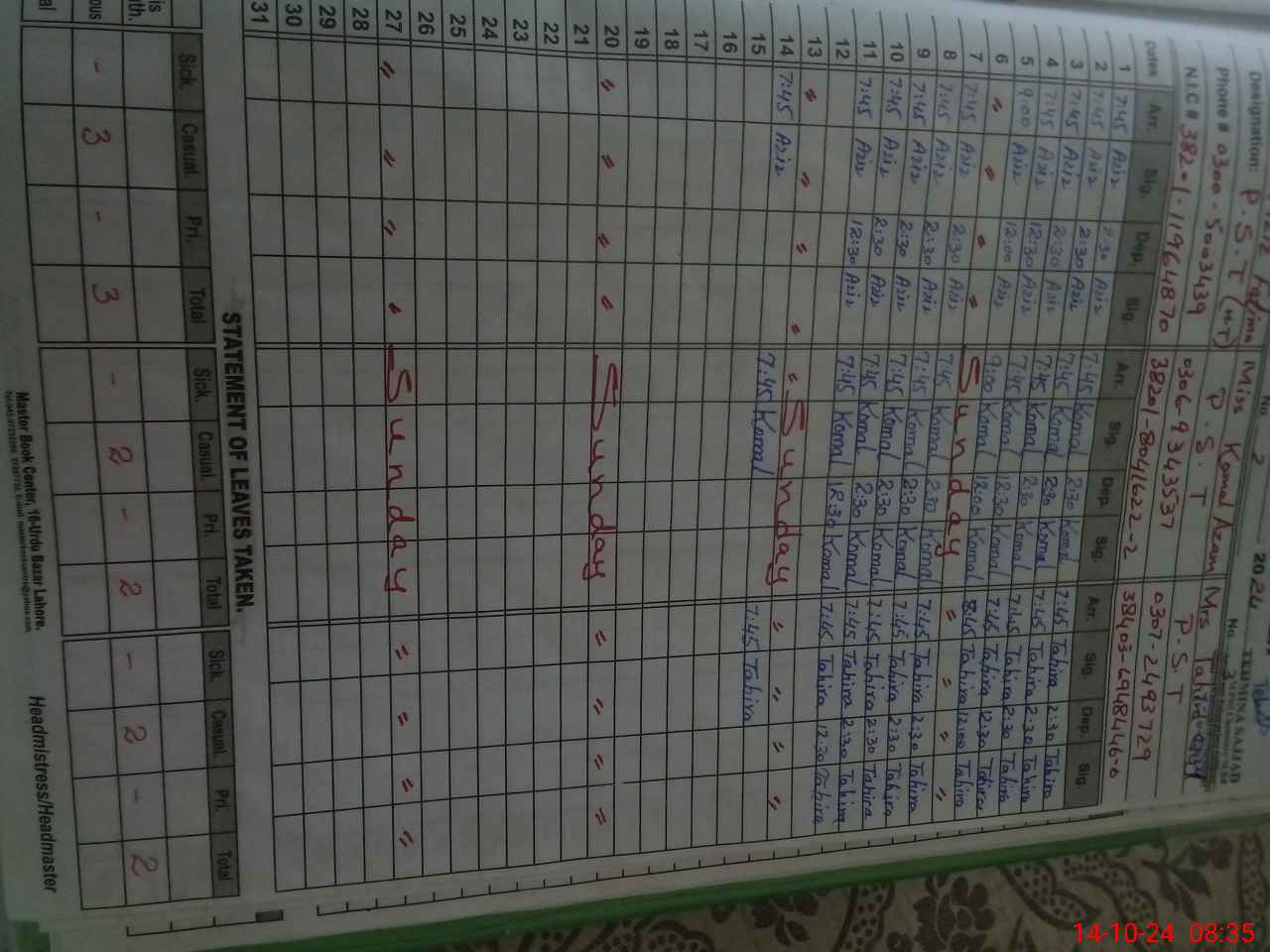 | Name: Az**** Fa**** Designation: (School Headmaster's/Headmistress's) PST Phone/Cell Number: 03**** |