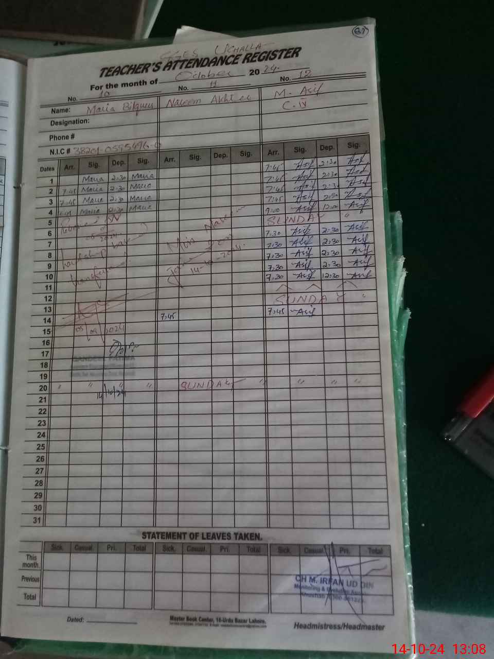 | Name: MR**** AQ**** RI**** Designation: (School Headmaster's/Headmistress's) SSE ( BIO) Phone/Cell Number: 03**** |