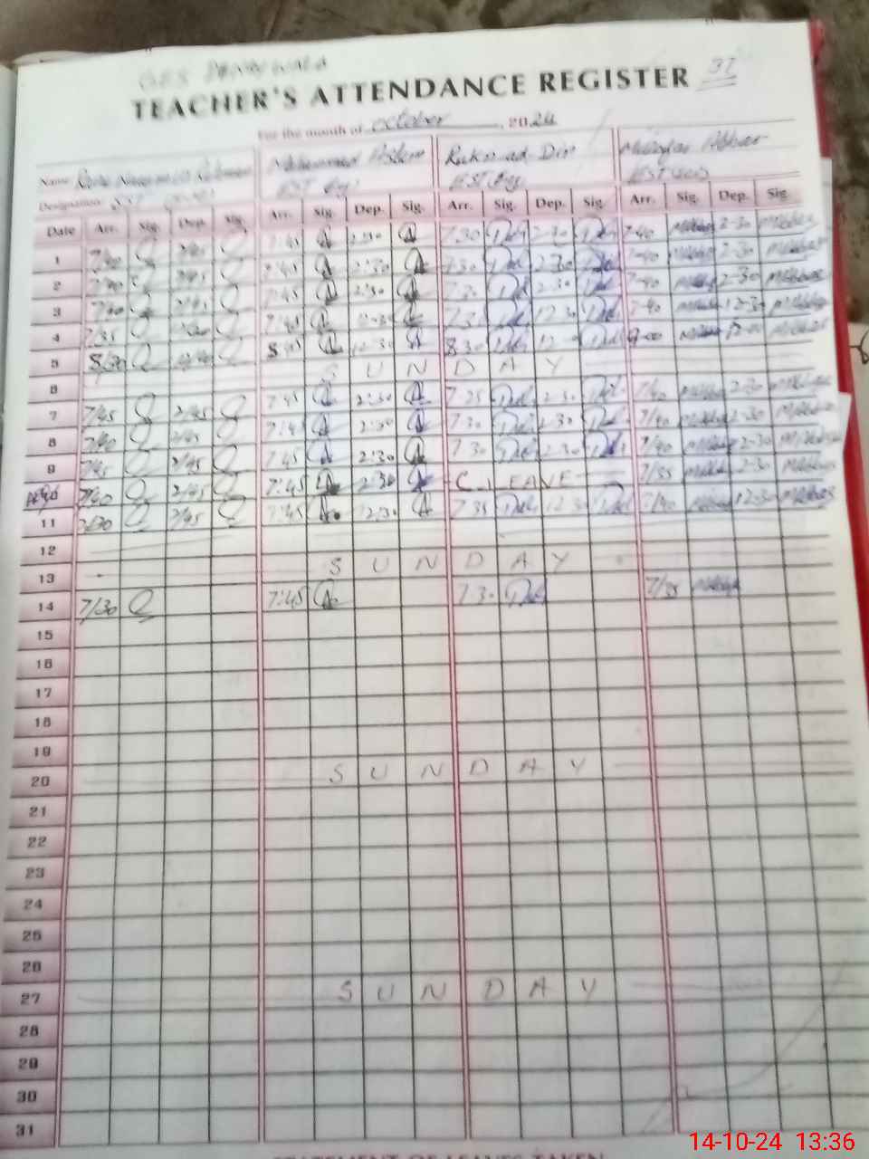 | 36**** | Wa**** Sh**** | CIV | 0 | 0 | 30 | 0 | 0 | 0 | 0 | 0 | 0 | Absent (Un-Authorized) | |