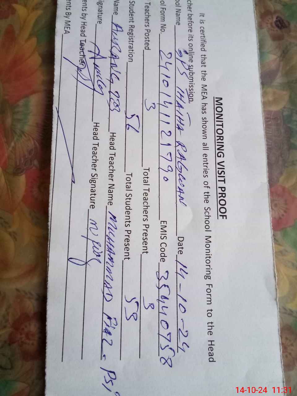 | EMIS Code: 35440758 | Name of School: GPS THATHA RAGWAN | |||