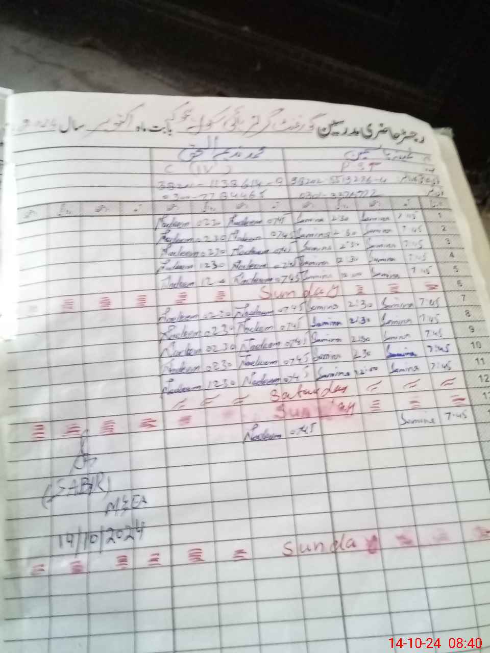 | Name: NU**** PE**** Designation: (School Headmaster's/Headmistress's) S.S.T.(GEN) Phone/Cell Number: 03**** |