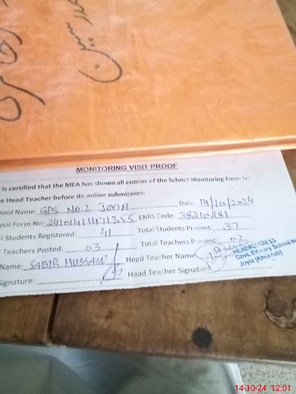 | EMIS Code: 38210281 | Name of School: GPS NO. 2 JOYIA | |||