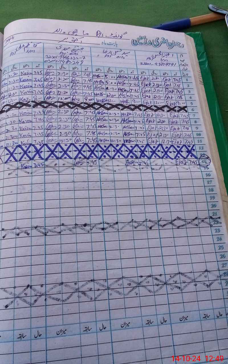| CNIC | Full Name | Designation | R/C | Absence during last cal. month |