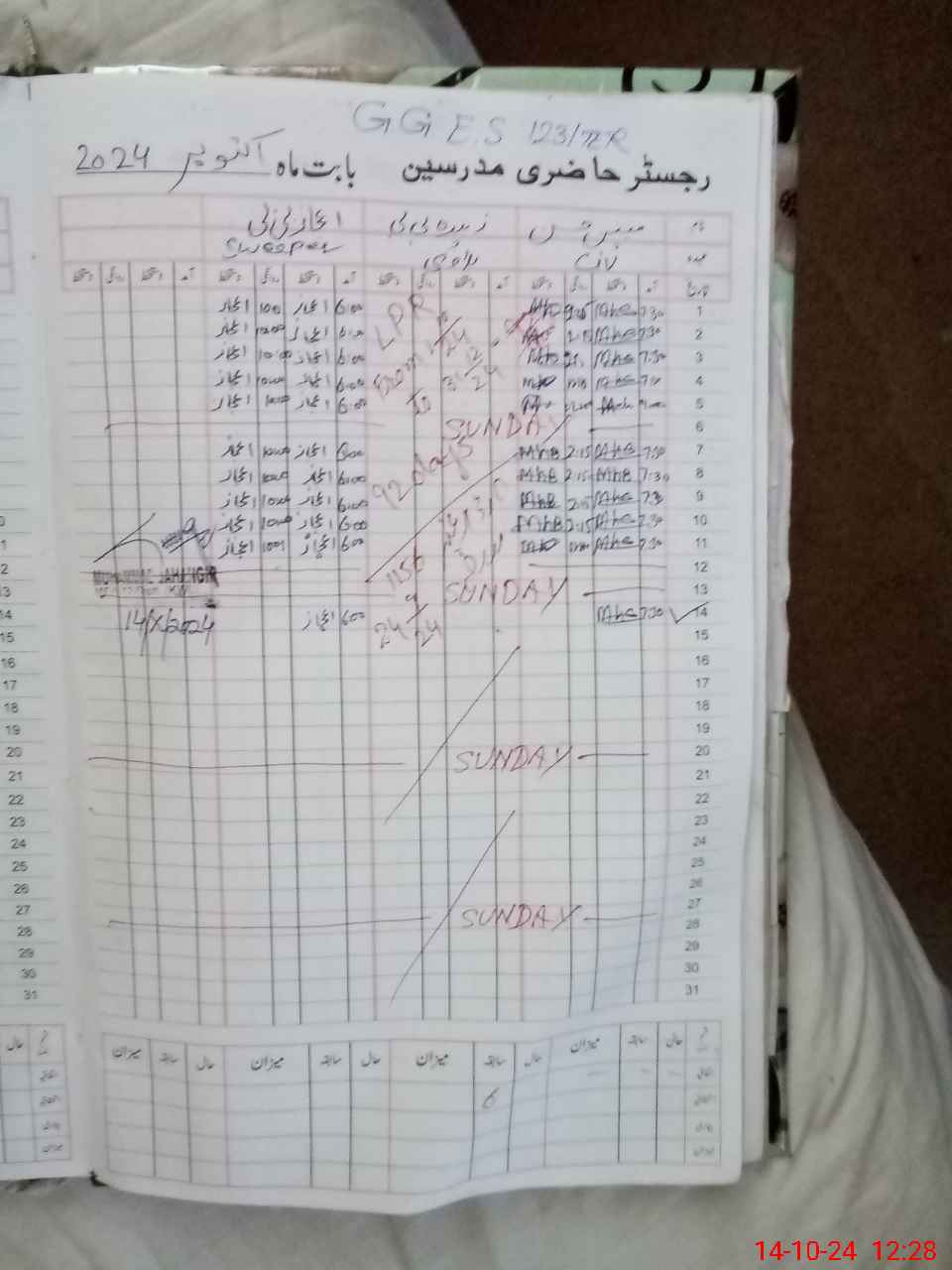 | Remarks (Use Separate Page if Required): AASMA ZAFAR IS ON TEMPORARY DUTY NEED BASE FROM GGES 21 GHAGH KABIR WALA TO THIS SCHOOL FROM 19 AUGUST 2024 TO 15 OCTOBER 2024 RANDOM CLASS FIVE IS NOW IN CLASS EIGHT AND BOYS ARE PASSED OUT FROM THIS SCHOOL | |||||