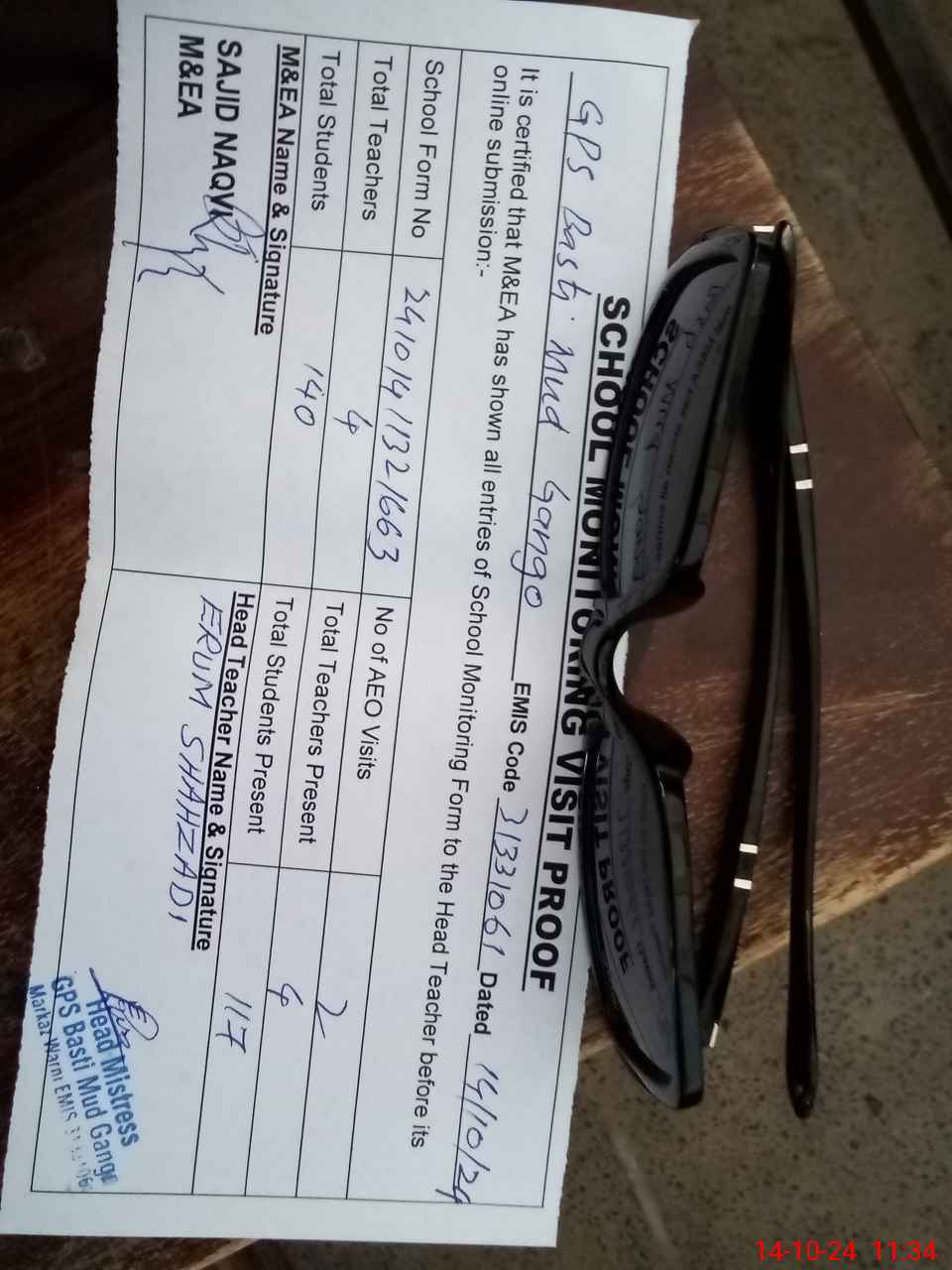 | EMIS Code: 31331061 | Name of School: GPS BASTI MUD GANGO | |||