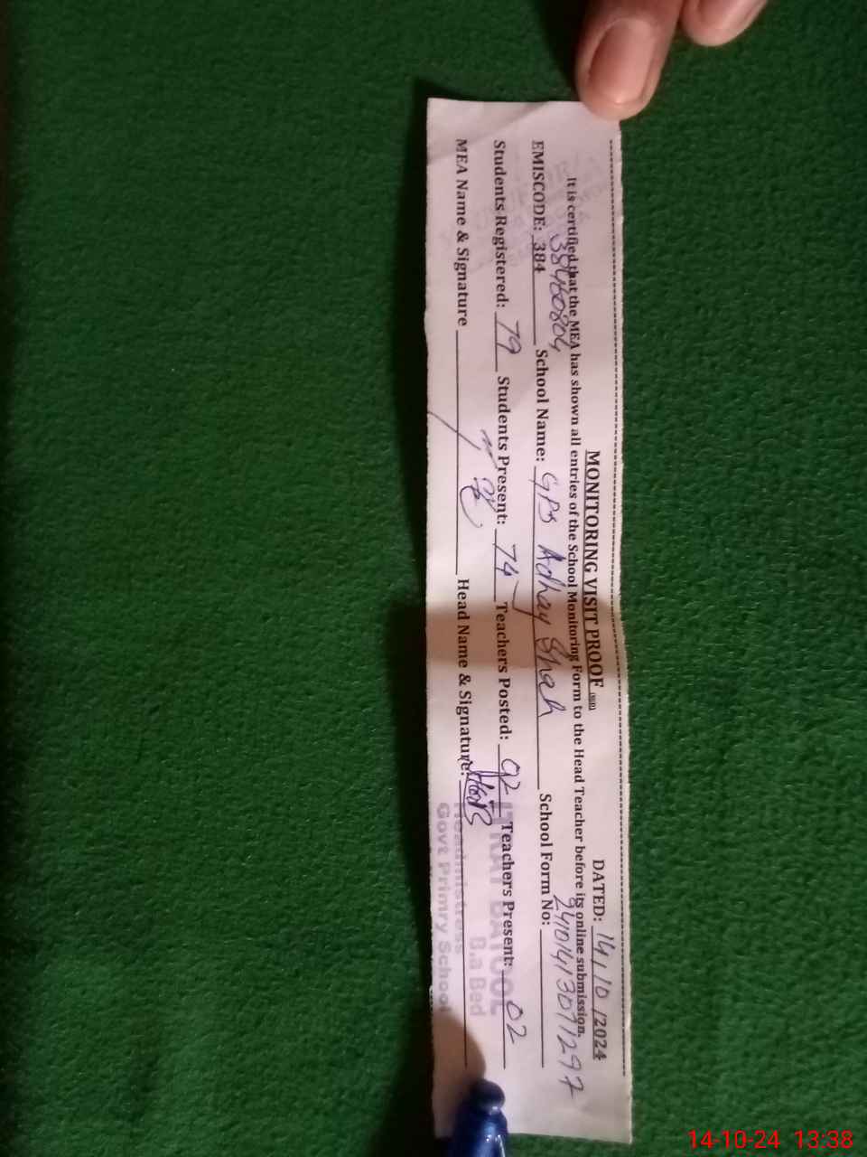 | Attendance Register | Head Teacher | MEA with School | Visit Proof |