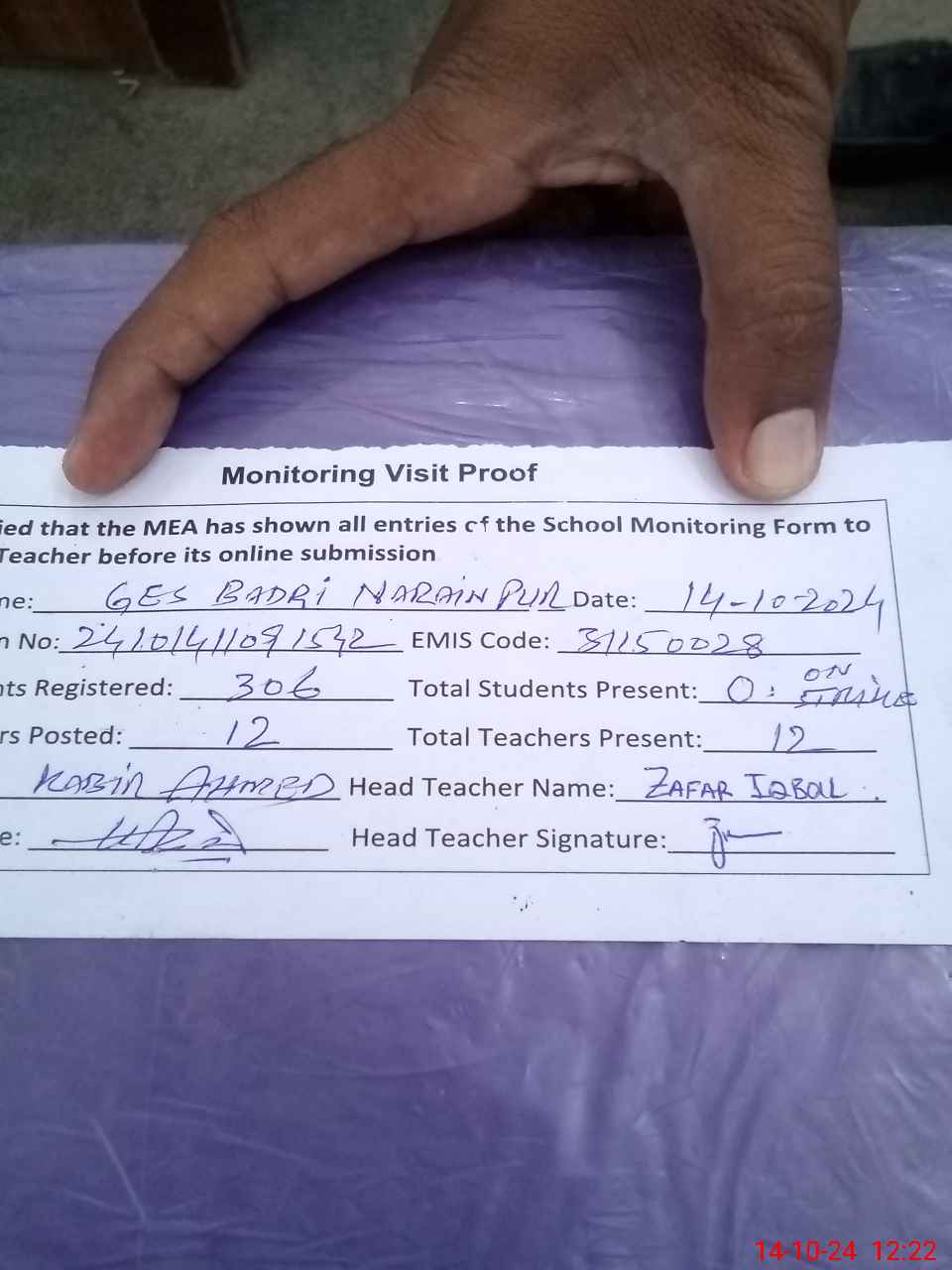 | EMIS Code: 31150028 | Name of School: GES BADRI NARIEN PUR | |||