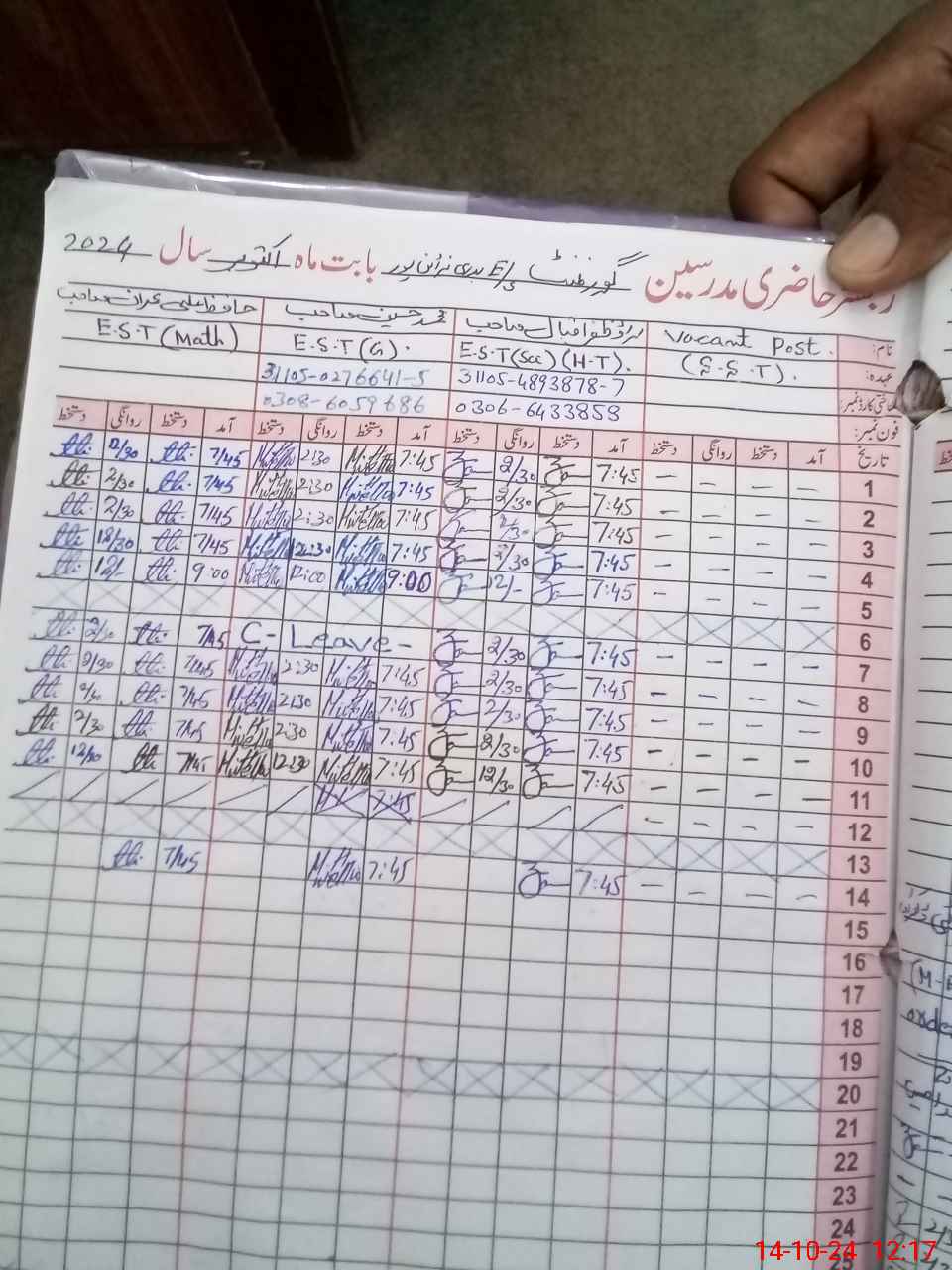 | Name: Za**** Iq**** Designation: (School Headmaster's/Headmistress's) EST Science Phone/Cell Number: 03**** |