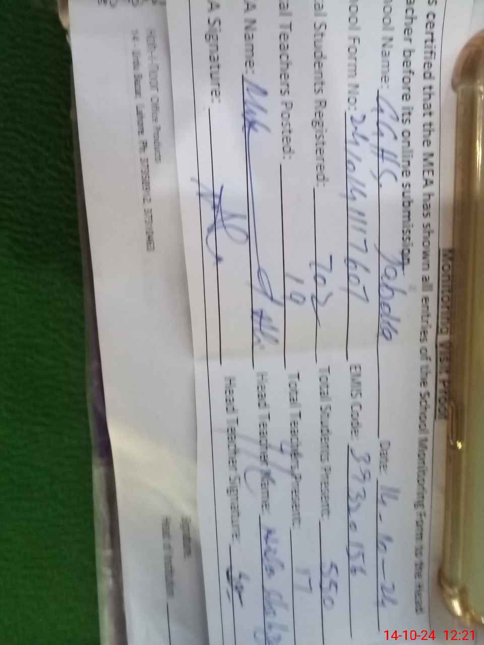 | Name: Mr**** NA**** Sh**** Designation: (School Headmaster's/Headmistress's) SST GENERAL Phone/Cell Number: 03**** |