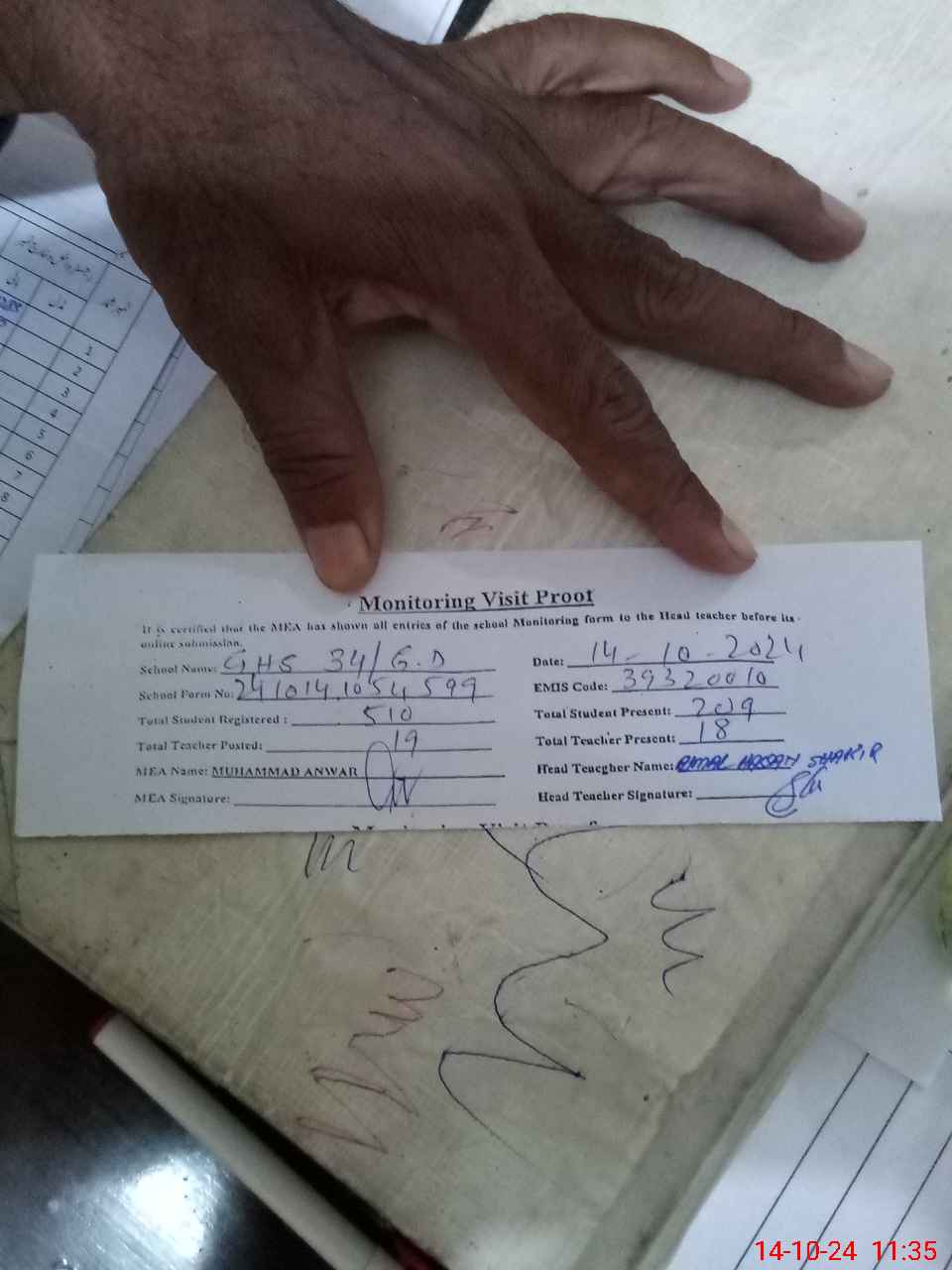 | EMIS Code: 39320010 | Name of School: GHS 34 GD | |||