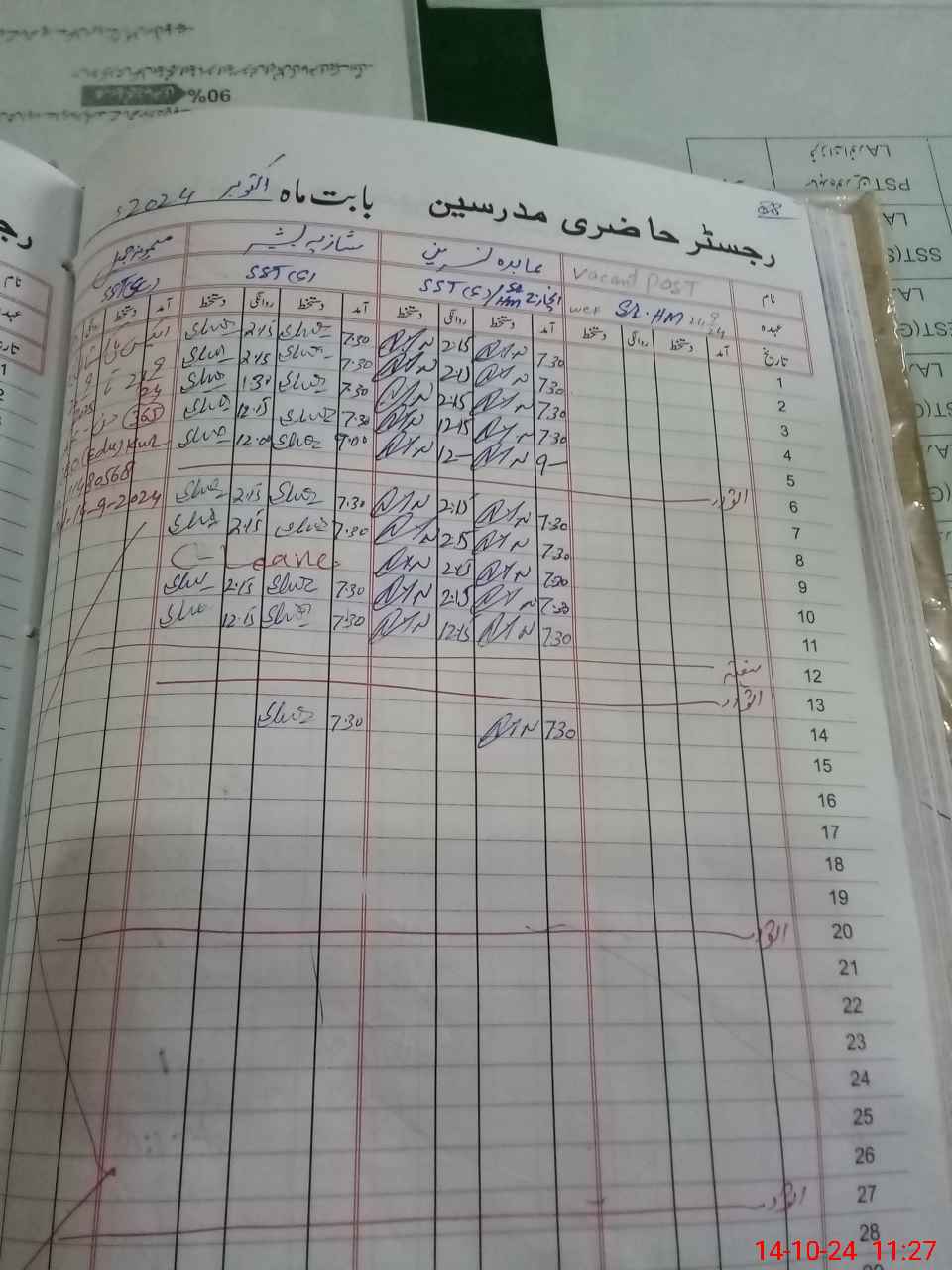 | CNIC | Full Name | Designation | R/C | Absence During Last Calender Month |