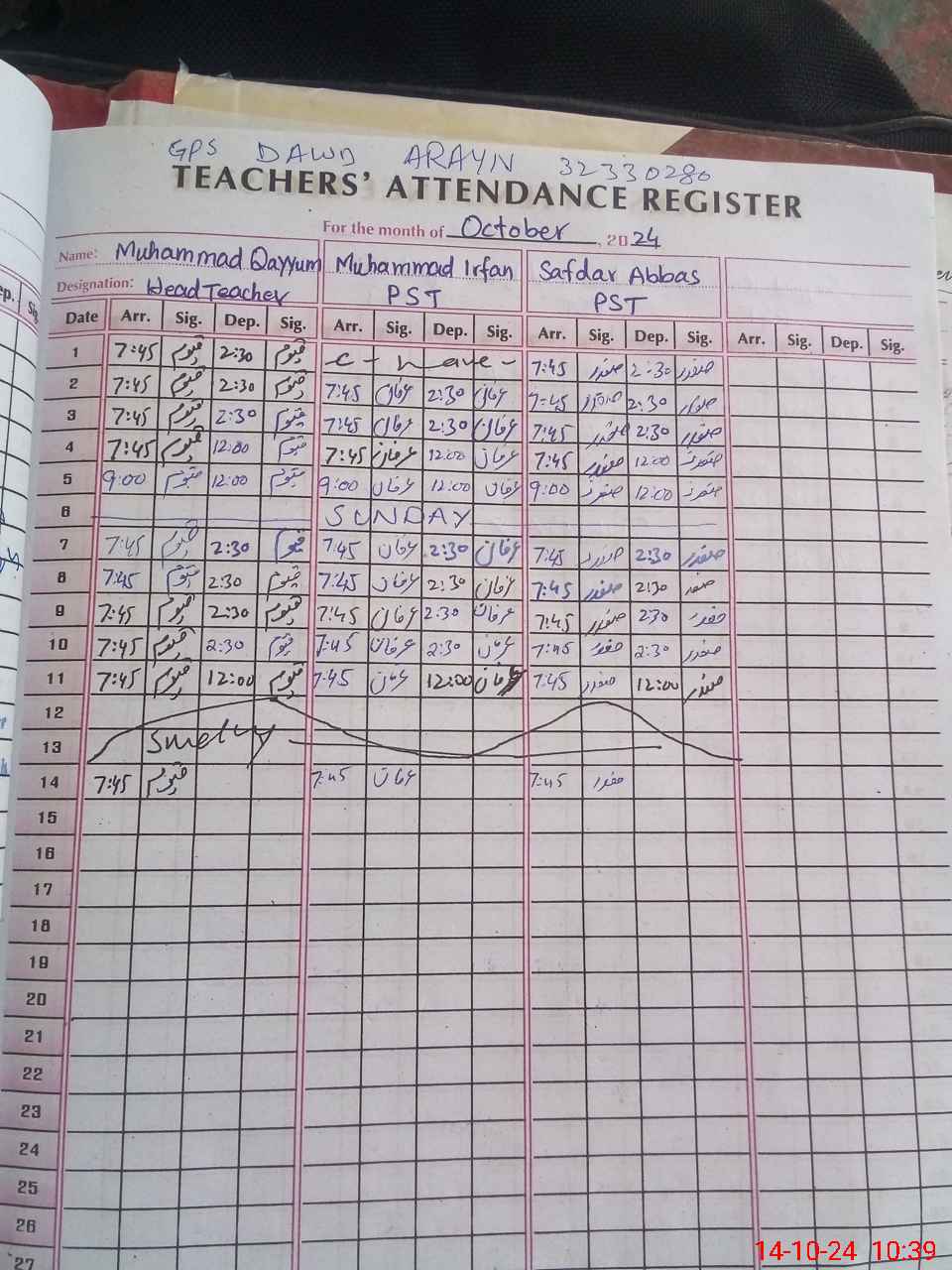 | CNIC | Full Name | Designation | R/C | Absence During Last Calender Month |