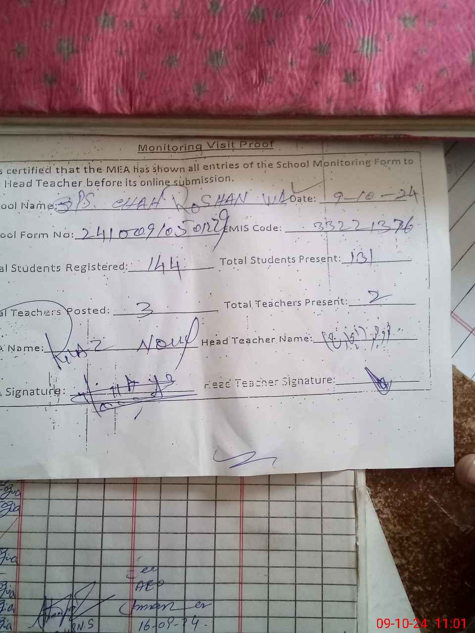 | EMIS Code: 33221376 | Name of School: GPS CHAH ROSHAN WALA | |||