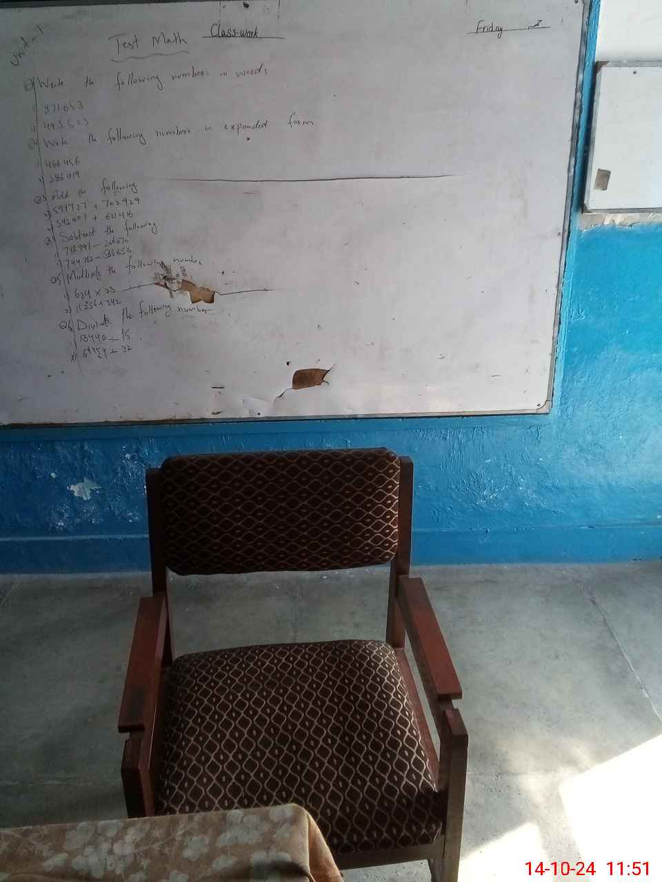 | Total no. of Classrooms: 3 No. of Classrooms Used for Teaching: 3 No. of Classrooms Storing Old Furniture, FTBs, etc: 0Comments if Any: 0 |