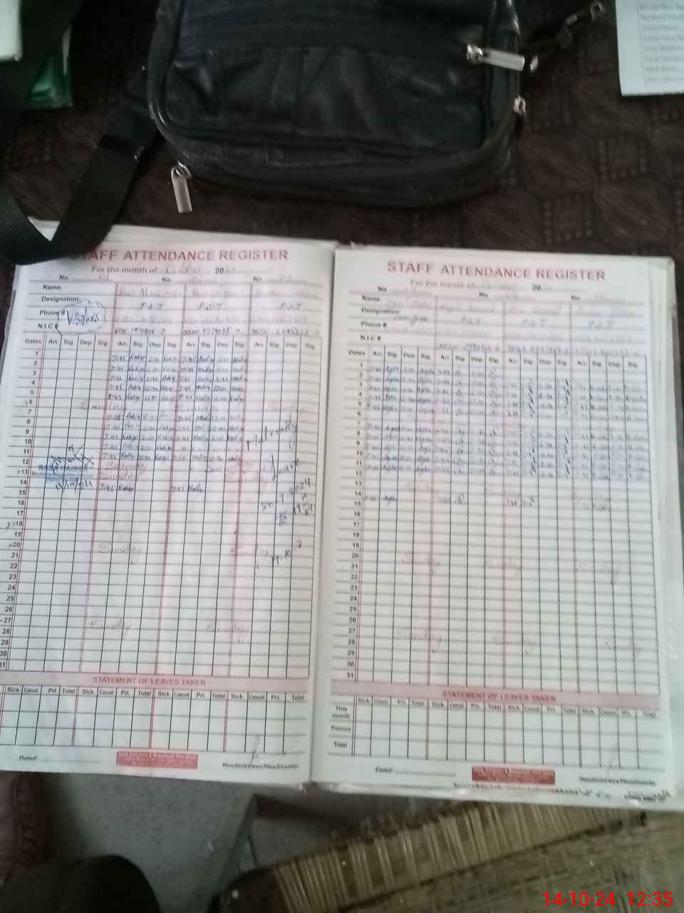 | CNIC | Full Name | Designation | R/C | Absence During Last Calender Month |