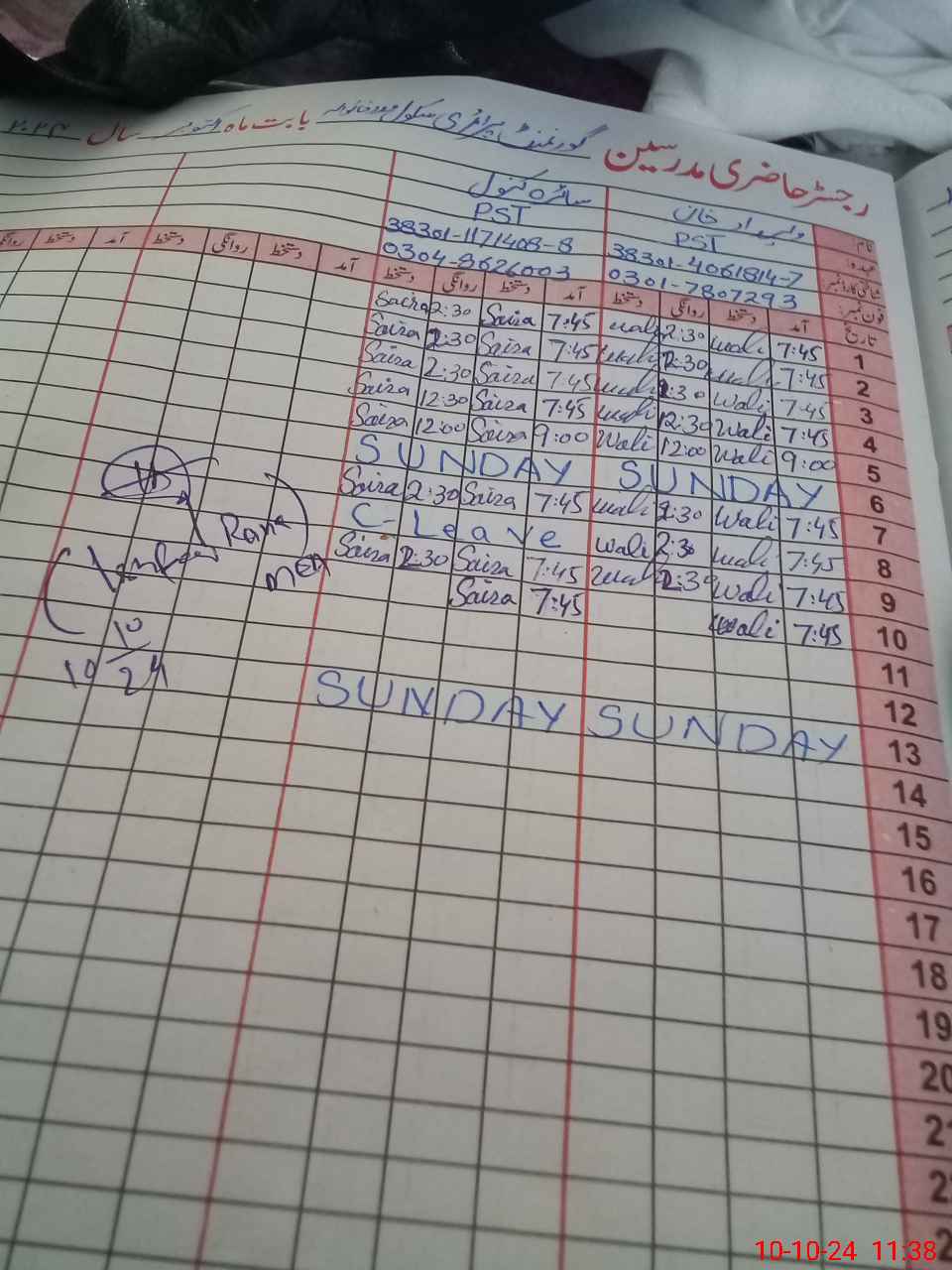 | Name: TE**** UL**** KH**** Designation: (School Headmaster's/Headmistress's) PST Phone/Cell Number: 03**** |