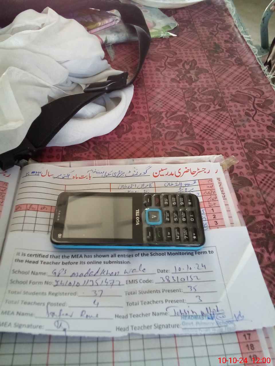 | Attendance Register | Head Teacher | MEA with School | Visit Proof |