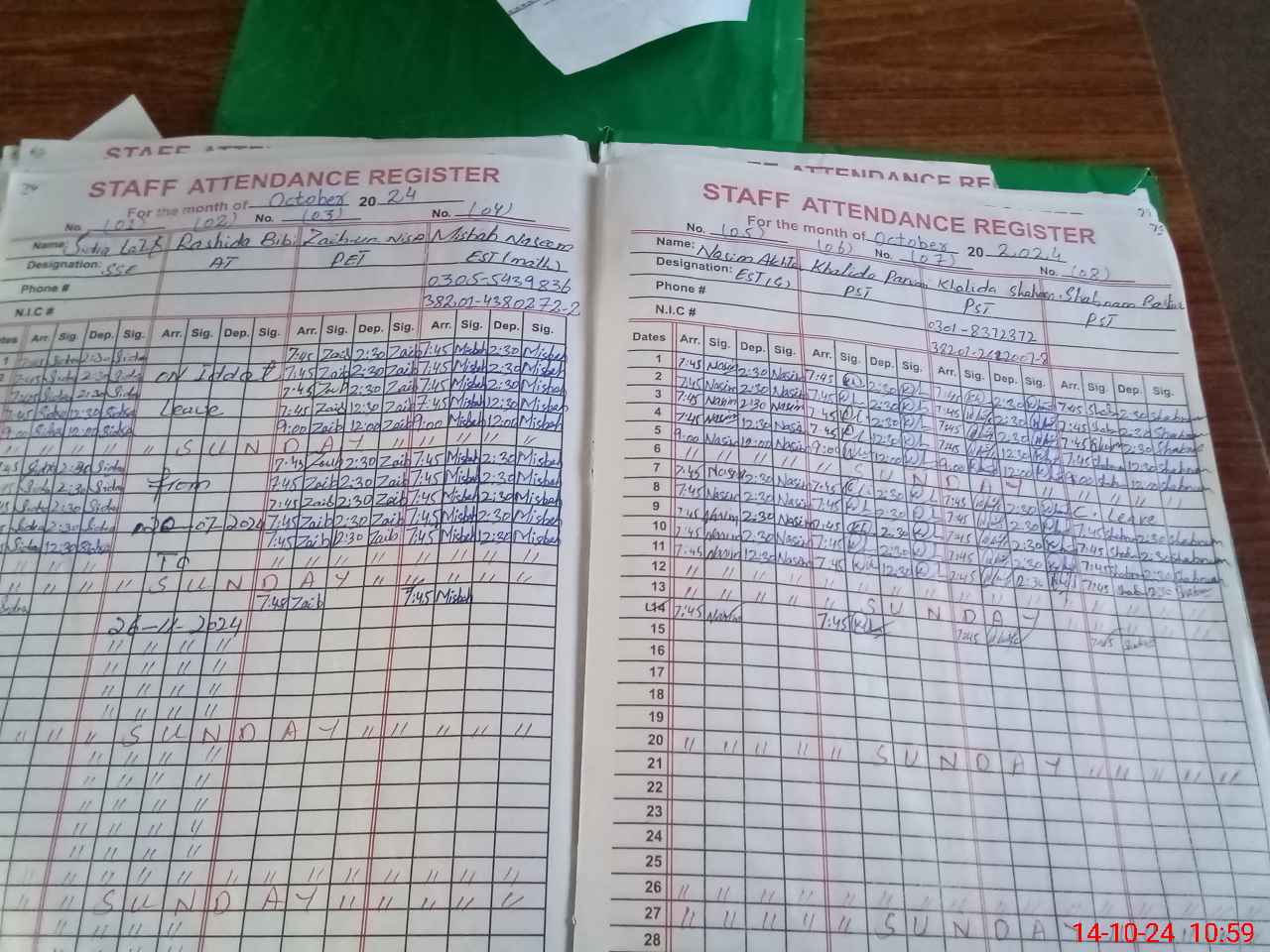 | CNIC | Full Name | Designation | R/C | Absence During Last Calender Month |