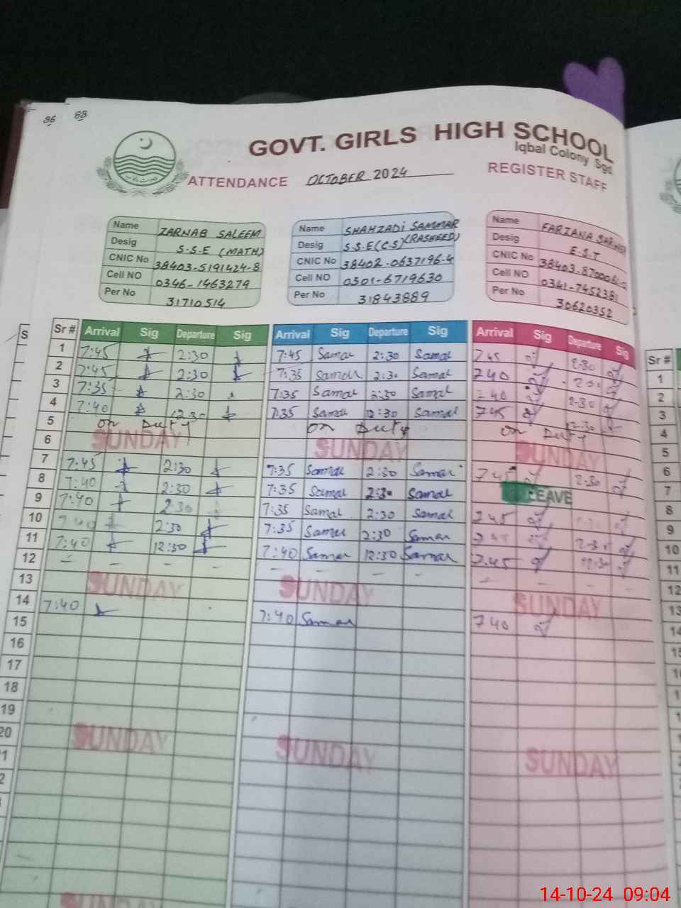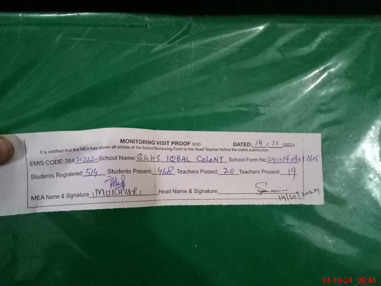 | EMIS Code: 38420222 | Name of School: GGHS IQBAL COLONY SARGODHA | |||