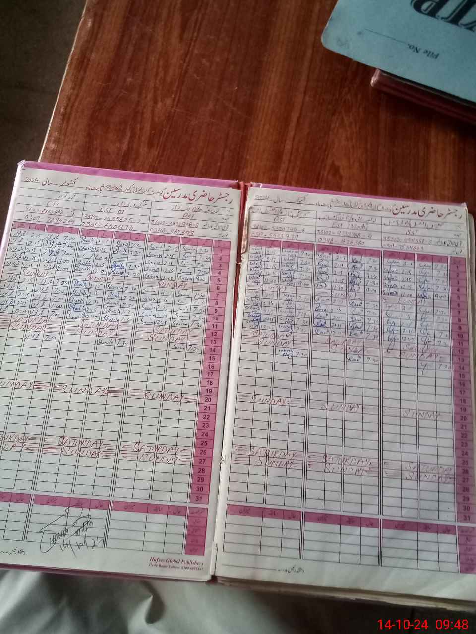 | CNIC | Full Name | Designation | R/C | Absence During Last Calender Month |