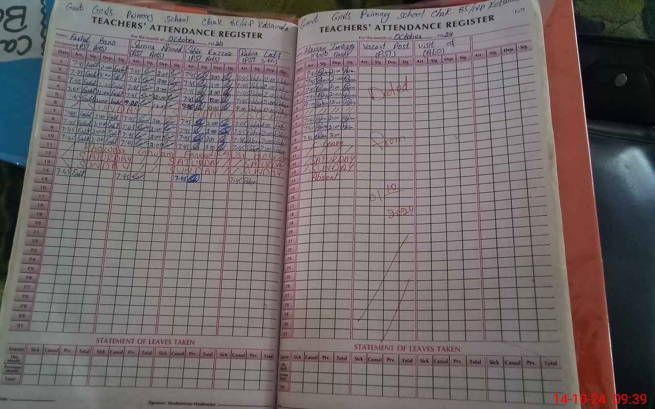 | Attendance Register | Head Teacher | MEA with School | Visit Proof |