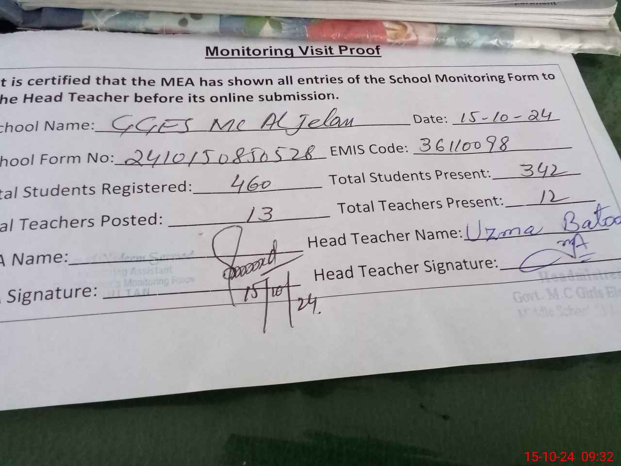 | EMIS Code: 36110098 | Name of School: GGES MC AL-JEELAN MULTAN | |||