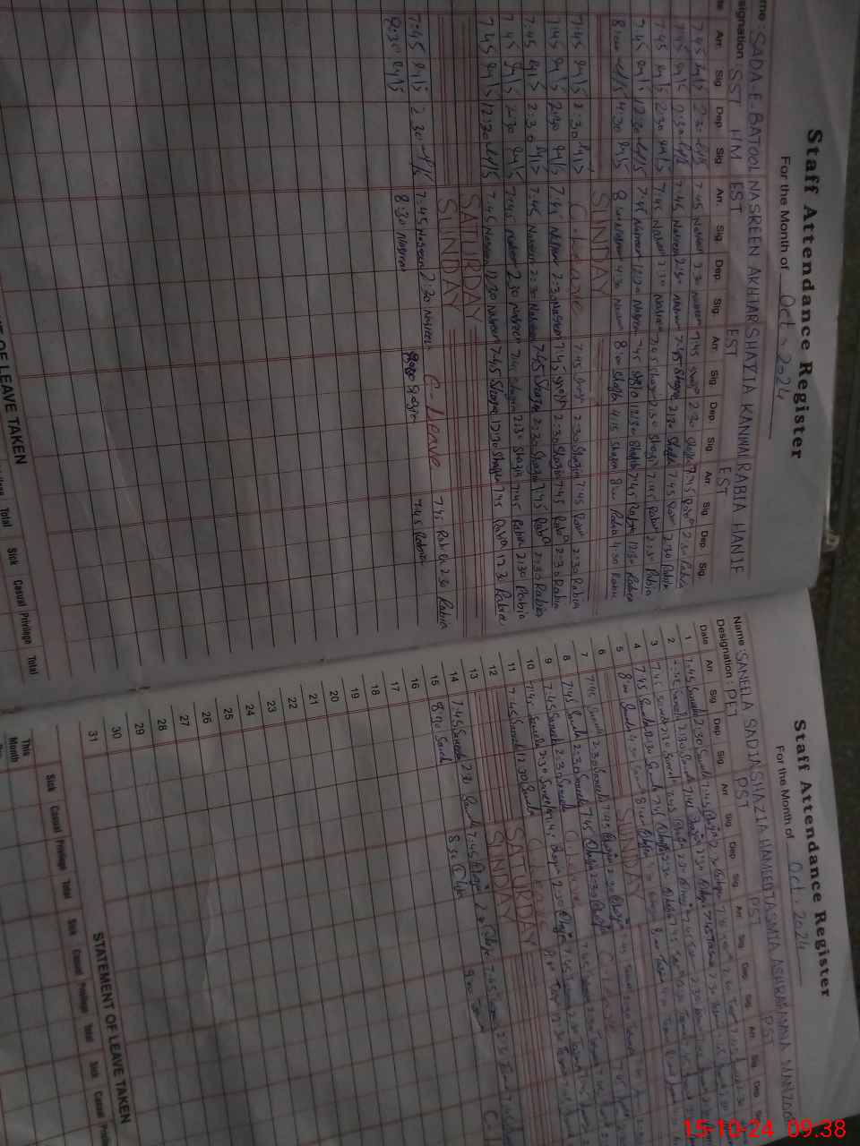 | Leave | Duty | Absent | Maternity | Medical | Ex- Pak |