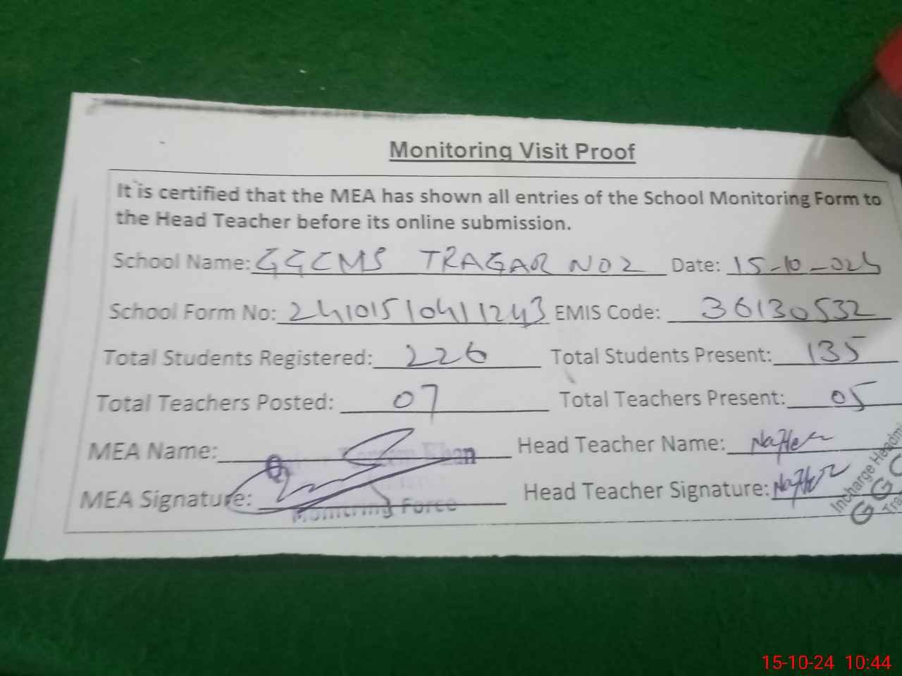 | Monitoring Date: 15-10-2024 | Start Time: 15-10-2024 10:04 AM | End Time: 15-10-2024 10:44 AM | Name of MEA: Qa**** Ka**** Kh**** | |
