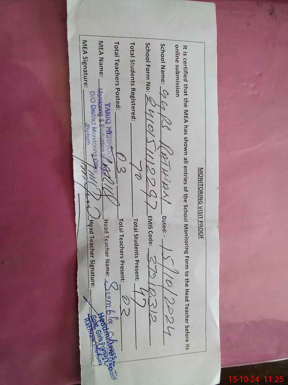 | EMIS Code: 37210312 | Name of School: GGPS RATHIAN | |||