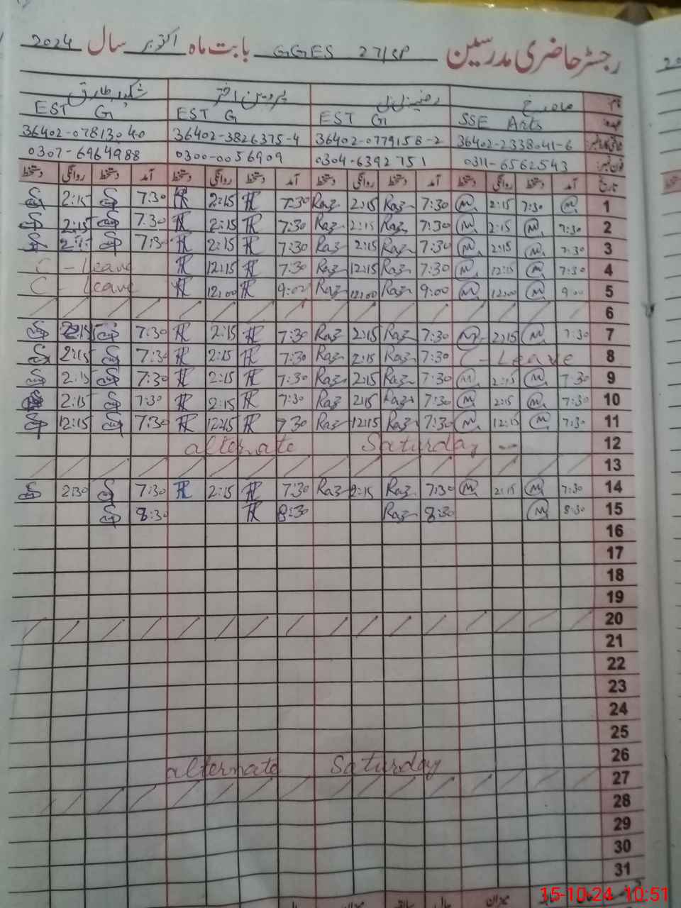 | Name: MA**** RU**** LE**** Designation: (School Headmaster's/Headmistress's) S.S.T.( ARTS) Phone/Cell Number: 03**** |