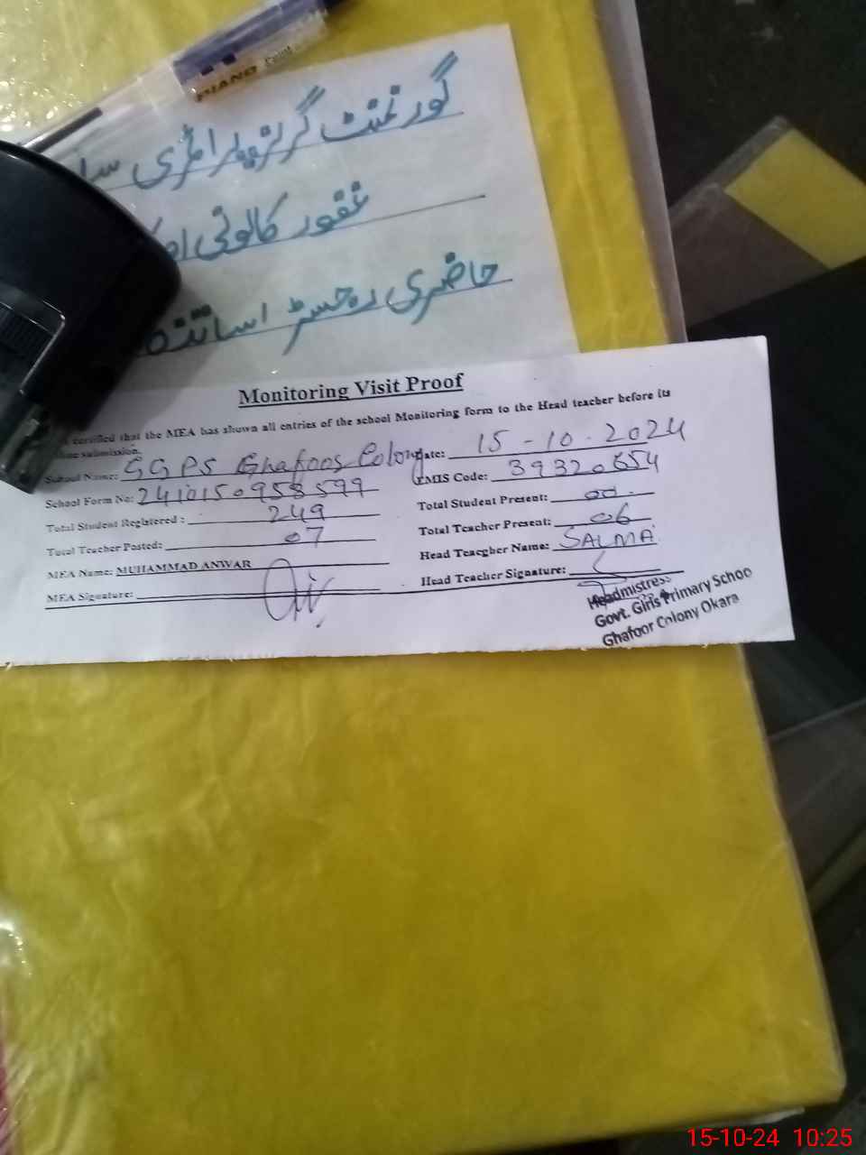 | EMIS Code: 39320654 | Name of School: GGPS GHAFOOR COLONY OKARA | |||