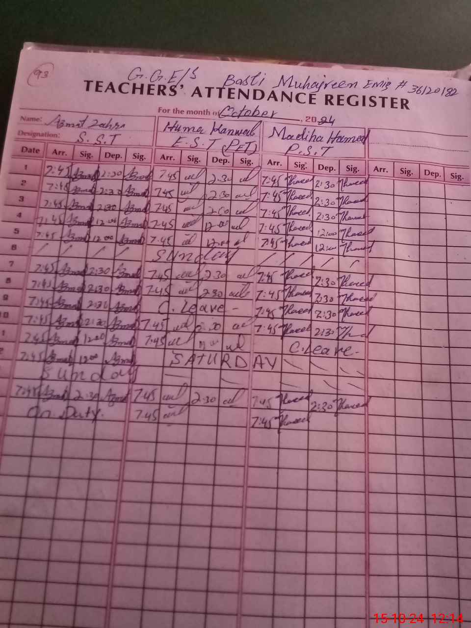| Name: Az**** Za**** Designation: (School Headmaster's/Headmistress's) SST Phone/Cell Number: 03**** |