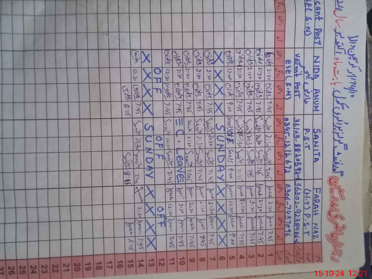 | Leave | Duty | Absent | Maternity | Medical | Ex- Pak |