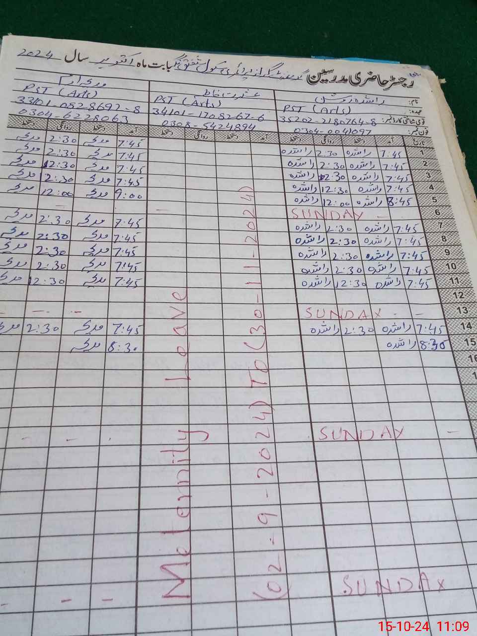 | 34**** | Is**** Fa**** | PST | Regular | 0 | 0 | 0 | 0 | 0 | 0 | 0 | 0 | 0 | Maternity |