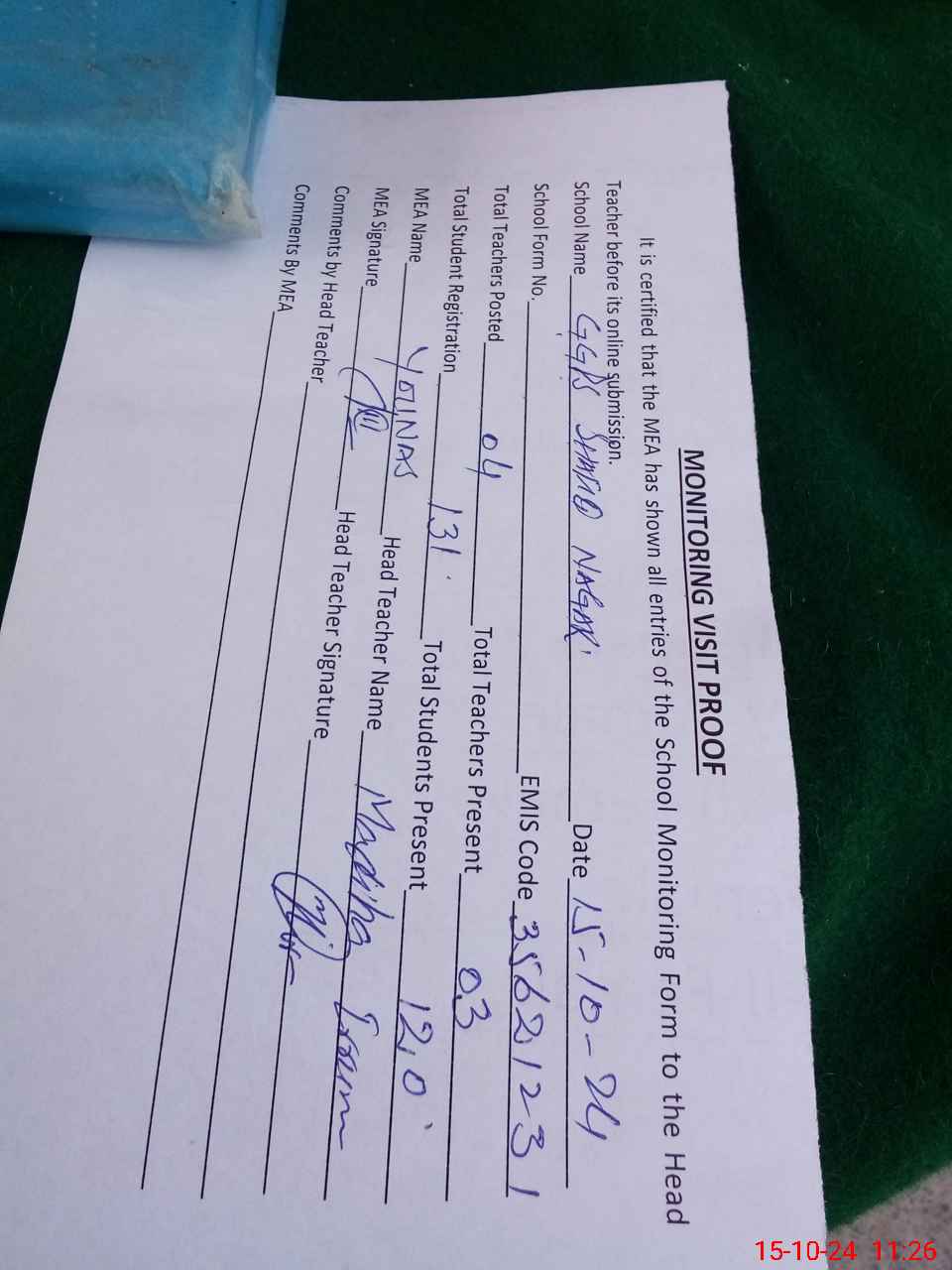 | EMIS Code: 35621231 | Name of School: GGPS SHAFIQ NAGAR | |||